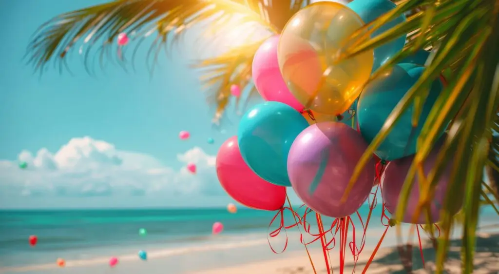 Bring the beach indoors with tropical decorations. Palm leaves, seashells, inflatable flamingos, and bright floral arrangements create a lively setup. Use turquoise and sandy tones to mimic the seaside. This refreshing birthday party decoration theme is ideal for summer birthdays or poolside parties.
